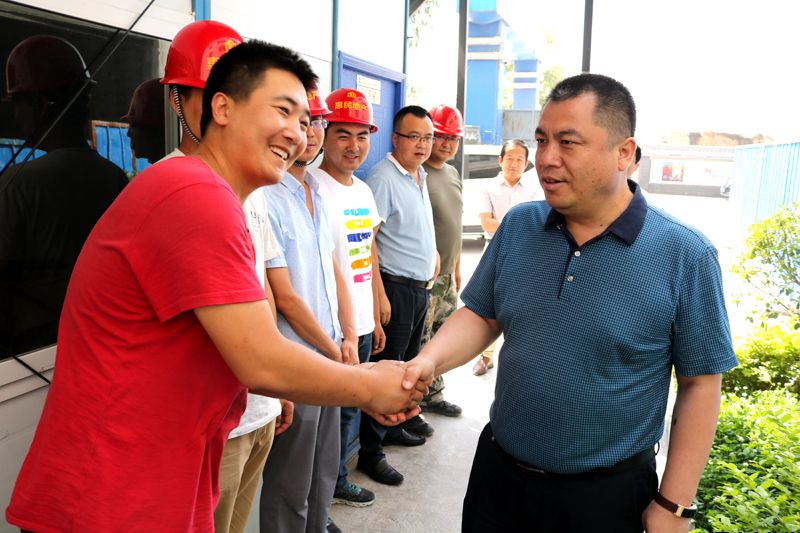 “炎炎夏日,大家辛苦了,我代表公司對大家表示慰問!”在新北嘉園工地現場,唐常寧與一線員工親切握手,向他們表示慰問。他一邊聽取工程進展情況匯報,一邊對項目進展情況進行查看,鼓勵大家克服高溫困難,合理地安排好工作和作息時間,保證自身健康,在確保高質量的前提下,保證時間進度,把工程建設好。唐常寧指出,項目實施過程中要進一步落實好安全生產管理措施,消除各類高溫天的安全隱患,確保各項工作井然有序、有條不紊。唐常寧要求,一線員工要充分發揮惠民人忠誠、責任、勤奮、敬業的公司精神,履行崗位職責,堅守工作崗位,全力以赴實施好項目,為我市的棚戶區改造貢獻自己的力量!在惠民大廈項目建設現場,唐常寧指出,惠民大廈項目是今年全市重大項目之一,市委市政府高度重視該項目的規劃建設,負責該項目建設的員工要善于總結過去項目實施過程中好的經驗做法,把惠民大廈項目建設作為實踐學習的樣板,舉全力打造惠民精品工程,創惠民形象品牌!