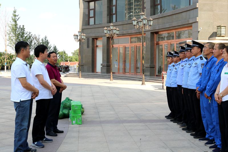 對于堅守在公司一線崗位的基層員工,連續的高溫牽動著公司領導的心,為將公司的關懷和慰問及時傳遞給一線員工,7月12日下午,受公司黨委書記、董事長馬千里委托,公司黨委副書記、總經理唐常寧,副總經理魏顯文、鄭忠軍、馬新平、柳振源,總工程師高健前往新北嘉園、惠民大廈施工現場和新城國際、惠民花園物業中心、柳湖路苗圃,向奮戰在一線的基層員工送去慰問,并將公司準備的高溫慰問品送到他們手中,讓員工們在烈日炎炎的酷暑中感受到一絲舒心的涼意。