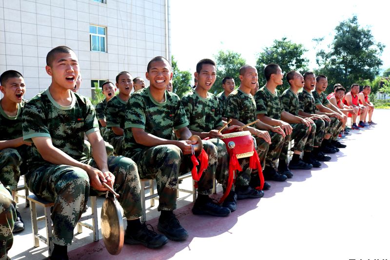 武警平涼市森林支隊官兵現場擊鼓吶喊