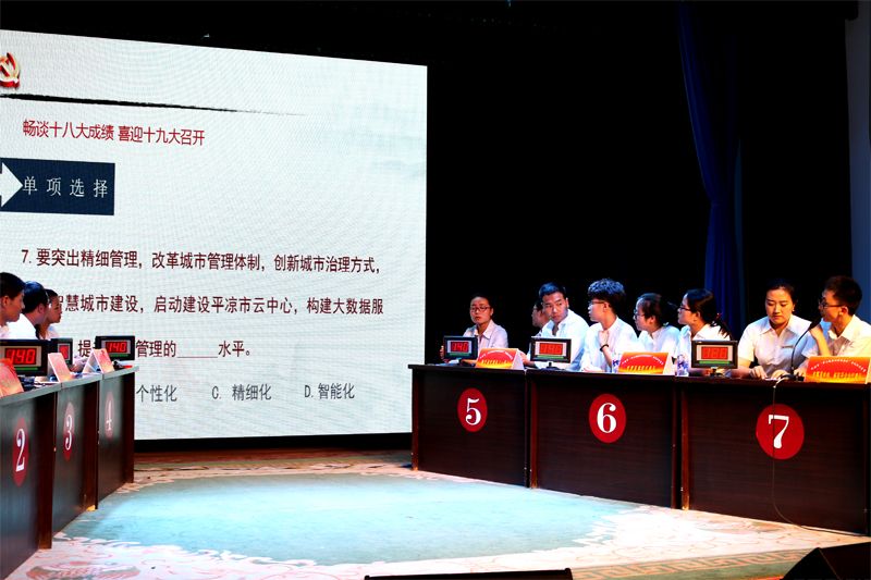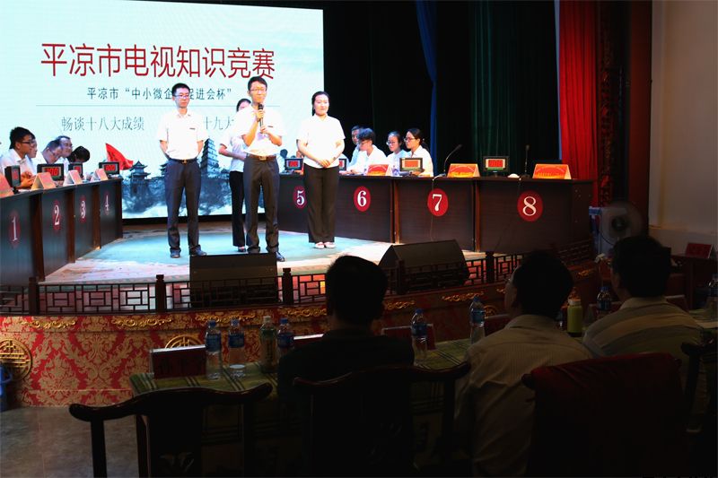 7月26日上午,參加全市“中小企業(yè)促進(jìn)會(huì)杯”暢談十八大成績(jī)·喜迎十九大召開(kāi)電視知識(shí)競(jìng)賽復(fù)賽階段比賽的32支隊(duì)伍,為取得決賽的入場(chǎng)券在崆峒區(qū)“崆峒笑談”傳承演藝中心展開(kāi)激烈角逐,我公司參賽隊(duì)代表中省駐平及市屬企業(yè)賽區(qū)參加競(jìng)賽。