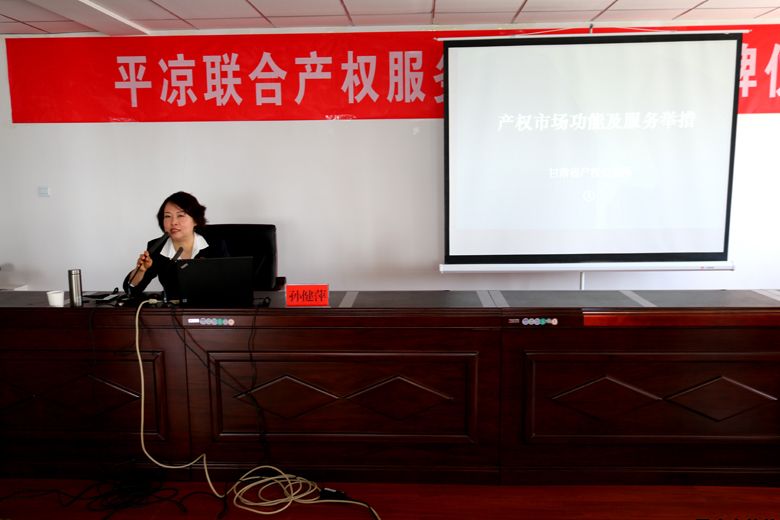 隨后,出席揭牌儀式的全體領導嘉賓聽取了甘肅省產權交易所股份有限公司副總經理、平涼聯合產權服務有限公司執行董事孫健萍所作的服務實體經濟業務交流。