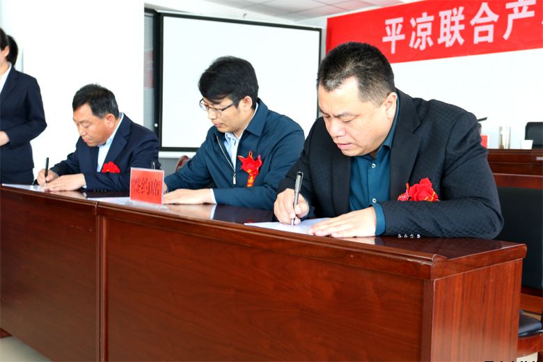 儀式現場,平涼市城鄉建設投資有限責任公司黨委副書記、總經理唐常寧,甘肅省產權交易所股份有限公司總經理趙永濤,平涼市城鄉建設投資有限責任公司副總經理、平涼聯合產權服務有限公司總經理柳振源共同簽署《產權交易委托框架協議》。