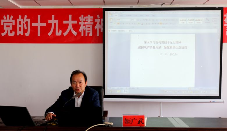 4月20日,惠民公司舉辦黨的十九大精神宣講暨黨風(fēng)廉政警示教育大會,會議由中共蘭州市委組織部副縣級組織員姬廣武主講,副總經(jīng)理柳振源主持。副總經(jīng)理馬新平、總工程師高健、中層管理人員、黨務(wù)工作人員及部分員工,共計(jì)70余人參加會議。