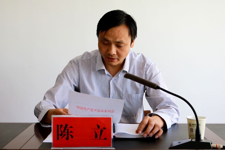 市委組織部副縣級組織員陳立宣布市委關于市惠民公司主要領導職務任免的通知
