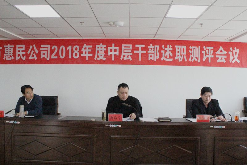 1月25日,市惠民公司召開2018年度中層干部述職測評會議。會議由黨委書記、董事長唐常寧主持,副總經理魏顯文、馬新平及公司中層干部,共計28人參加會議。