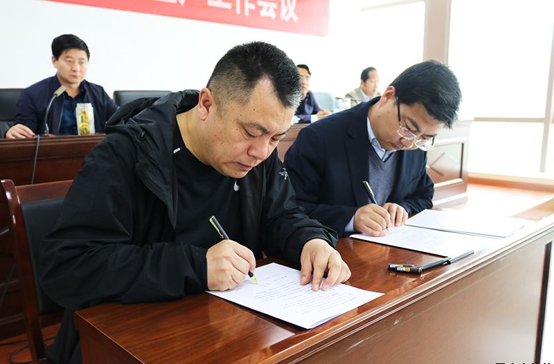 會上,副總經理柳振源同志傳達《國務院安全生產委員會關于認真貫徹落實習近平總書記重要指示精神堅決防范遏制重大事故的緊急通知》(安委明電〔2019〕1號)文件精神;總工程師高健宣讀了《關于表彰獎勵2018年度項目施工單位安全生產管理先進單位的決定》;公司對項目施工安全生產管理先進單位進行了表彰獎勵;房產公司總經理馮永明、平涼一中項目施工單位負責人就落實好安全生產工作作表態發言;副總經馬新平就2019年公司安全生產管理工作從抓好重點部門安全風險管控、抓好日常辦公安全管理、加大隱患排查整治力度和強化員工安全警示教育培訓等四個方面詳細進行安排部署;黨委書記、董事長唐常寧與各部室、下屬公司簽訂了安全生產目標管理責任書。