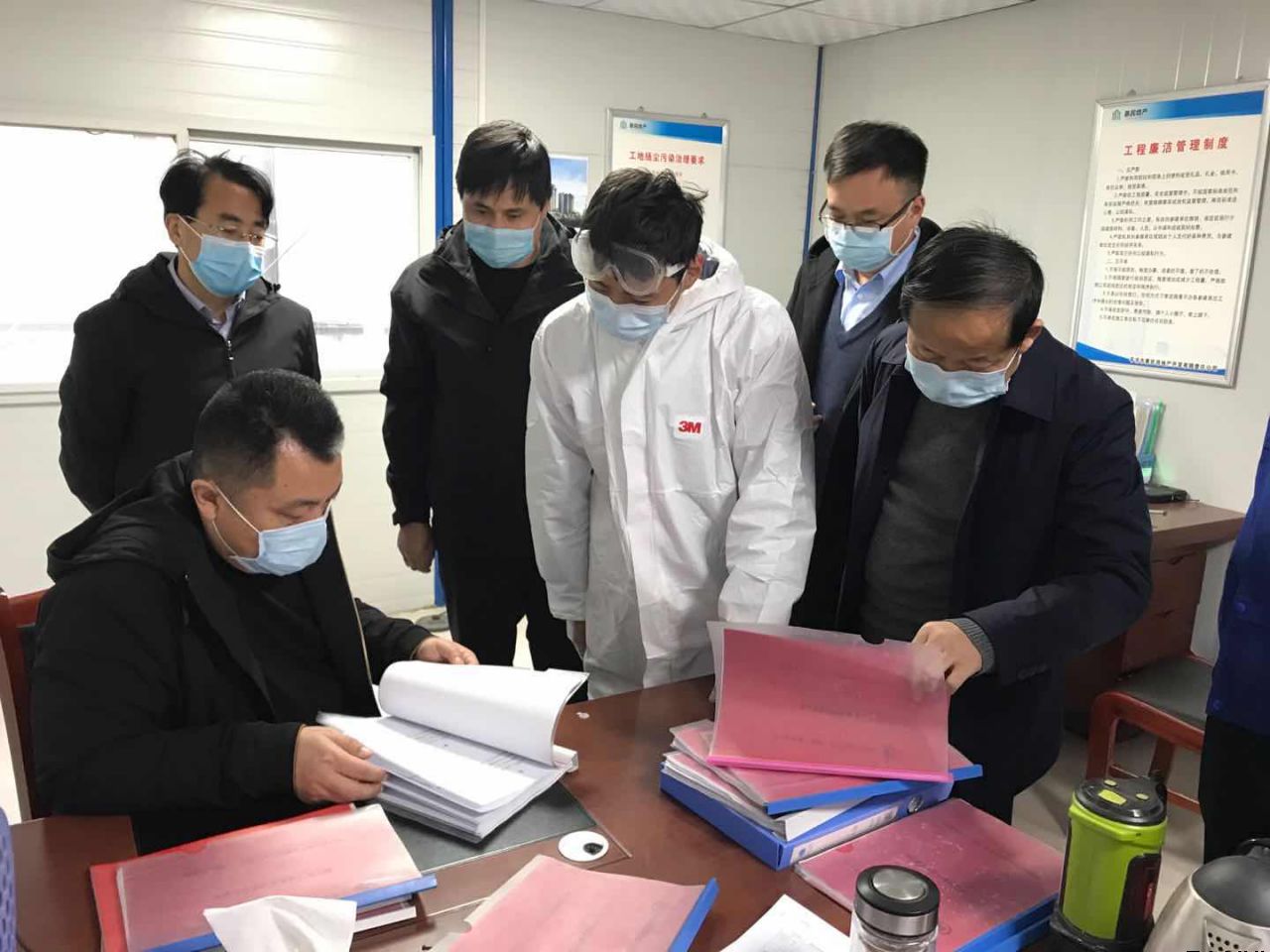 唐董事長一行先后深入平?jīng)鲆恢行滦^(qū)、御景華府工地,現(xiàn)場檢查了出入口人員信息登記流程、留觀室、疫情防控登記臺(tái)賬等資料,對(duì)防疫物資儲(chǔ)備和衛(wèi)生間、食堂、宿舍等重點(diǎn)區(qū)域消毒措施落實(shí)情況進(jìn)行了查看,并認(rèn)真聽取了相關(guān)負(fù)責(zé)人就疫情防控工作安排落實(shí)情況及復(fù)工復(fù)產(chǎn)安排的匯報(bào)。