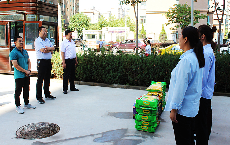 8月7日,受市惠民公司黨委書記、董事長唐常寧委托,公司黨委委員、總經(jīng)理胡紅訓,副總經(jīng)理魏顯文、王徐周、鄭忠軍、馬新平、柳振源,總工程師高健,總經(jīng)濟師王國太分組帶領(lǐng)黨委辦(辦公室)和工會相關(guān)負責人深入惠通公司、平?jīng)鲆恢许椖俊⒒菝窕▓@物管站、御景華府、惠民大廈、新城國際物管站、柳湖路苗圃、新北嘉園物管站、法院服務(wù)中心、平?jīng)鲑e館立體停車庫,向奮戰(zhàn)在一線的基層員工送去慰問,并將公司準備的慰問品送到他們手中。