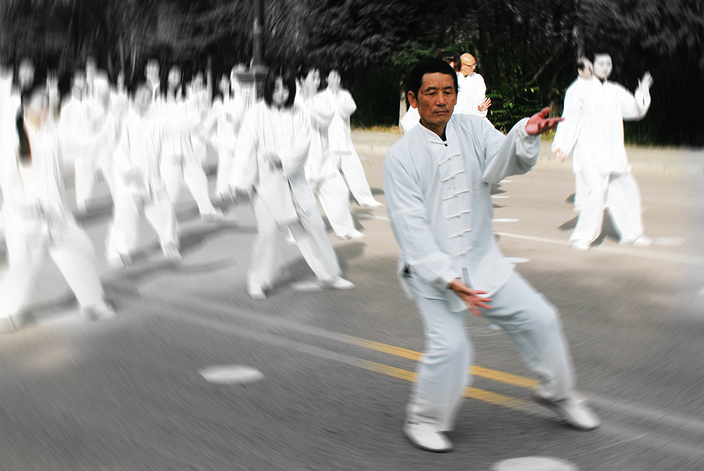 展演中,隨著舒緩的崆峒太極拳28式音樂,50多名參演人員身著白色太極拳服裝組成方隊,太極愛好者們由靜而動,表演動作整齊一致,一招一式,剛柔相濟,整個展演現場氣勢恢弘。
