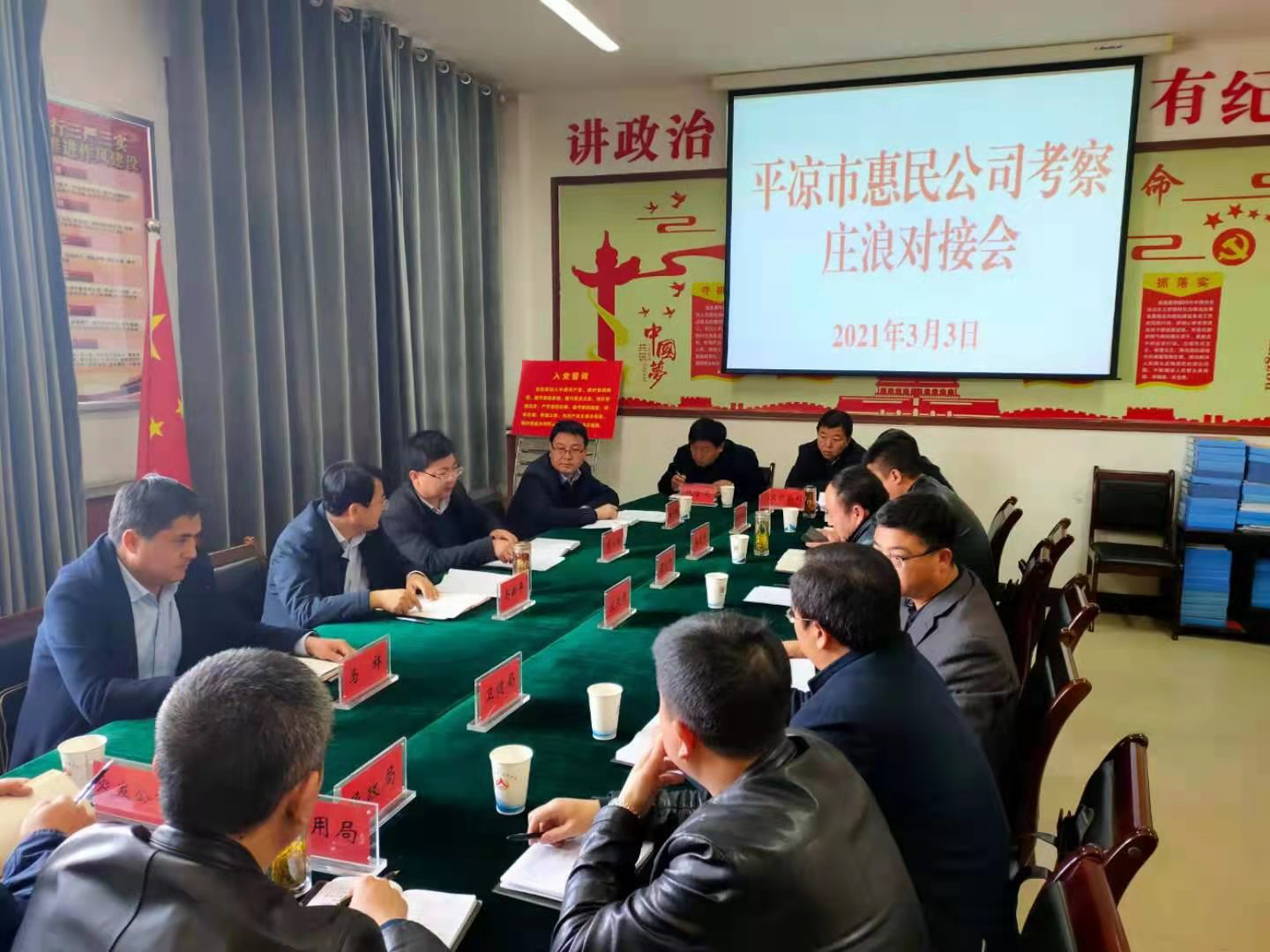 按照公司統一安排,3月3日平涼市城鄉建設投資有限責任公司(市惠民公司)副總經理馬新平,資產運營部、惠民房產公司、惠民停車場公司負責人一行4人赴莊浪縣洽談項目合作。莊浪縣副縣長樊對對主持座談會,縣發改局、住建局、自然資源局、衛健局、民政局、招商局、公用局、文旅公司、城投公司、農發公司負責人參加座談。