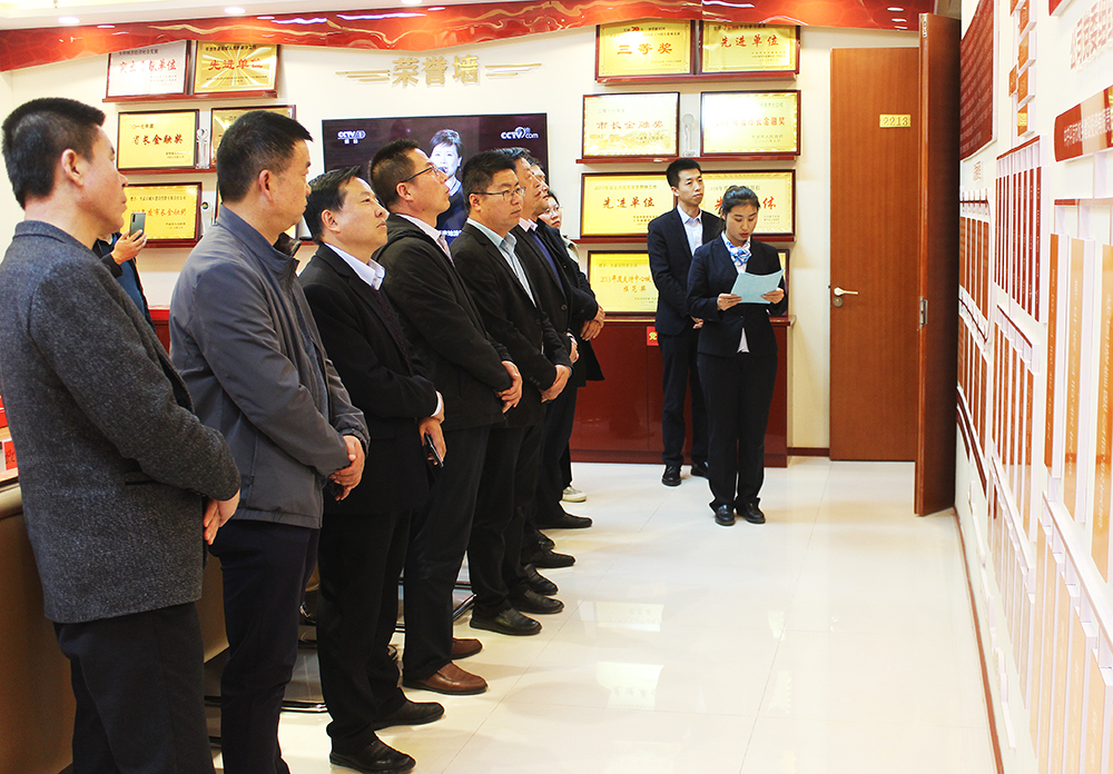 黃福晟一行現場觀摩了公司黨建活動室,詳細聽取了市惠民公司歷史沿革、黨建工作、創新意識、黨建活動等情況介紹。隨后黨委辦(辦公室)負責人向考察組補充介紹了公司在黨建工作機制、工作經驗等先進做法和管理,同時講解了惠民大講堂、三設三奪、六必存云集錦等創新載體開展情況。