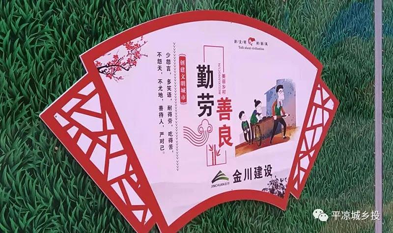 為了讓工地圍擋成為城市文明的一道風景線,房產公司用公益廣告及綠草皮扮靚建筑圍擋,并在項目現場懸掛多條宣傳橫幅。從社會主義核心價值觀到創建文明城市,以內容豐富的公益廣告為城市文明增色添彩。