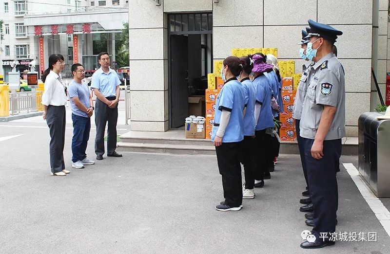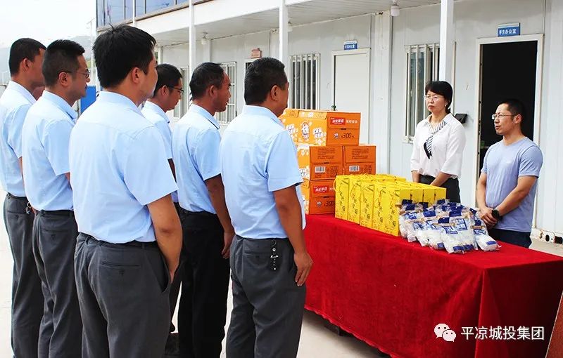 為做好高溫酷暑期間的防暑降溫工作,進一步傳遞集團公司對一線職工的關愛,7月26日,受公司黨委委員、總經(jīng)理胡紅訓委托,公司副總經(jīng)理王徐周、鄭忠軍、馬新平、王彥彥分組帶領黨委辦(辦公室)、工會工作人員,前往房產公司涇河流域治理、崇文書苑二期建設項目工地,物業(yè)公司所屬市委、市政府、市中級法院、區(qū)法院、惠民大廈、御景華府物業(yè)服務中心,停車場公司封閉停車場,向奮戰(zhàn)在一線的96名工作人員送去慰問,并將公司準備的慰問品送到他們手中。
