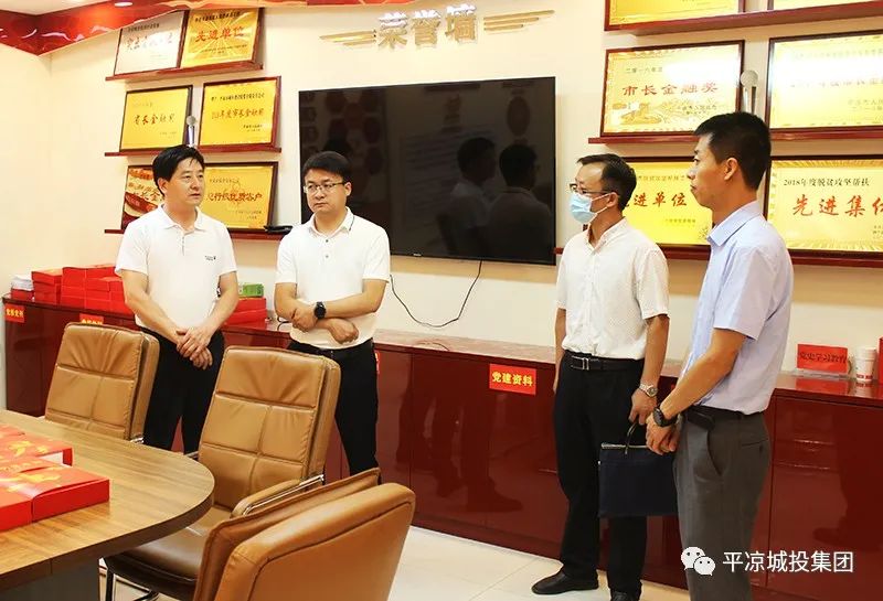 8月5日,市委組織部部務委員劉登輝一行3人督查考核平涼城投集團上半年黨建工作。市政府國資委黨委委員、副主任李小學,公司黨委委員、副總經理魏顯文陪同。