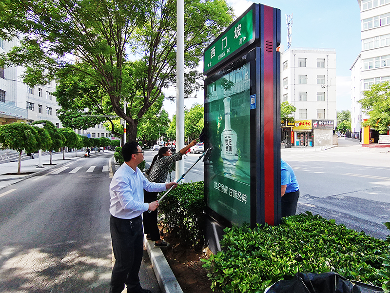 活動(dòng)中,全體員工分組前往西門坡、文化街、石家巷、西大街等城區(qū)主干道,對道路指示牌進(jìn)行了認(rèn)真細(xì)致的清洗,鏟除清潔了粘貼的小廣告,對廣告設(shè)施內(nèi)部電子元件做了維護(hù)保養(yǎng),確保箱體無積塵、無亂涂畫、無亂張貼等現(xiàn)象,以實(shí)際行動(dòng)為創(chuàng)建文明城市和公司發(fā)展貢獻(xiàn)力量。