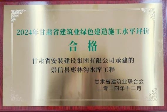 近期,由全過程咨詢公司監理的崇信縣棗林溝水庫工程榮獲“2024年甘肅省水利工程文明工地”“2024年甘肅省建筑業綠色建造施工水平評價合格”稱號。