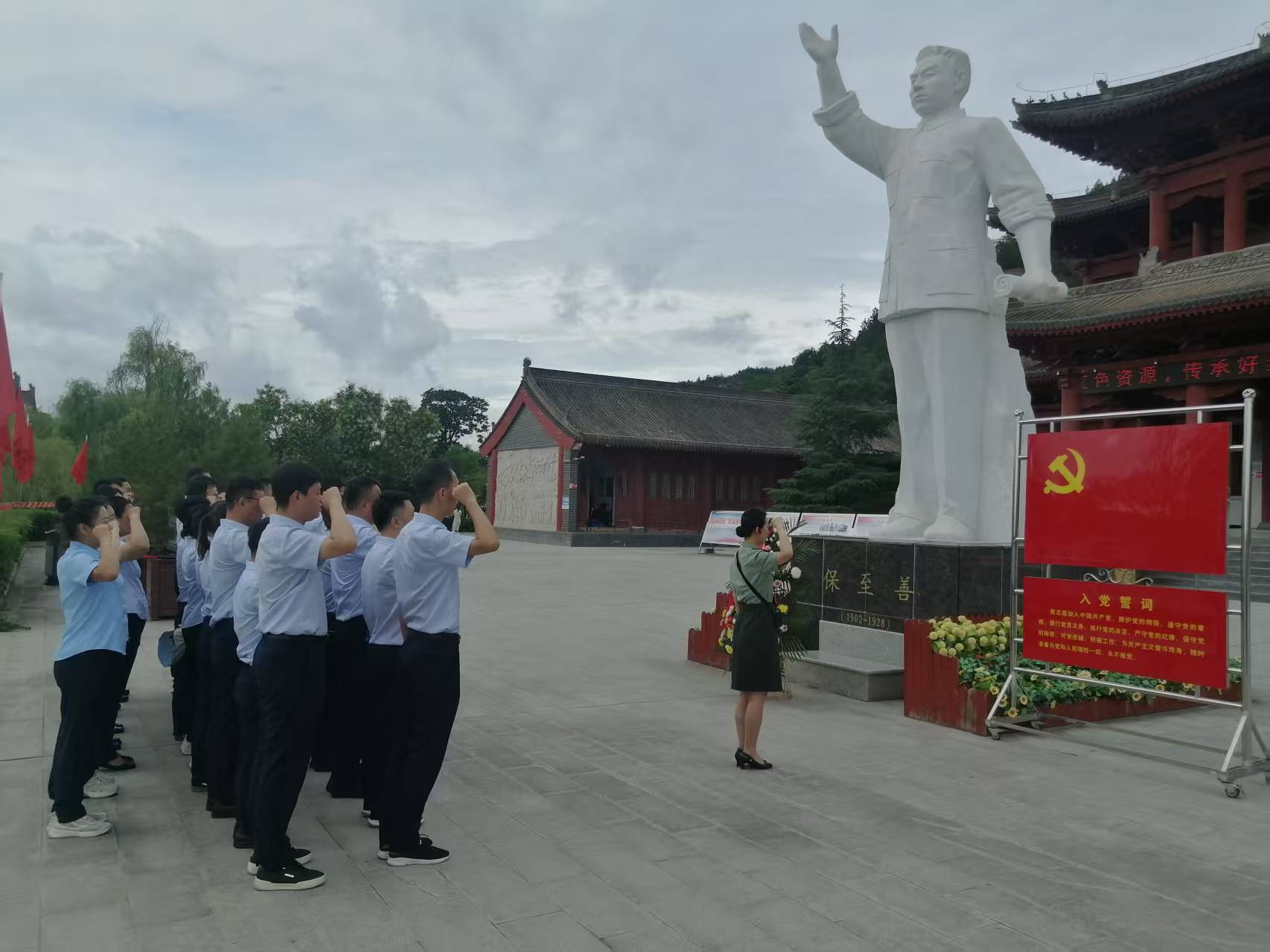 活動中,黨員們整齊列隊,神情肅穆,向保至善烈士敬獻花籃并鞠躬致敬,表達對英烈們的深切緬懷和崇高敬意。隨后,全體黨員莊嚴宣誓,重溫入黨誓詞,進一步激發初心使命。在講解員的引導下,大家認真參觀革命歷史陳列,聆聽革命先烈的英勇事跡,深入了解黨的光輝歷史和革命傳統。參觀結束后,黨員們分組開展交流研討,圍繞如何將紅色精神融入實際工作、提升服務意識和擔當精神進行了深入討論,進一步將紅色教育成果轉化為推動工作的實際行動。
