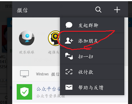 2.找到并點(diǎn)擊右上角加號(hào),在彈出的對(duì)話(huà)框里選擇“添加朋友”