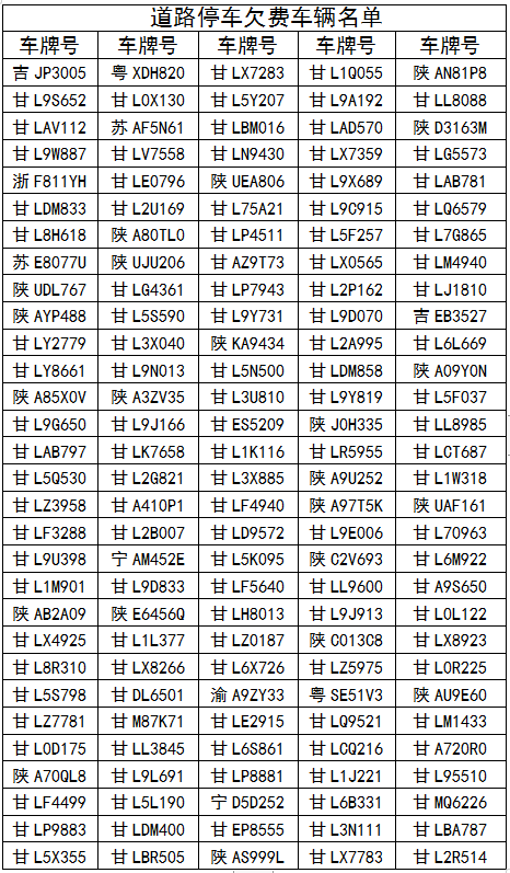 平涼中心城區智慧停車第八批路側停車欠費車輛信息公示
