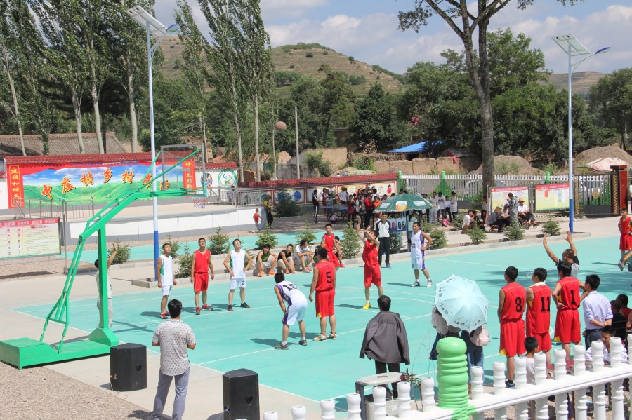 ?圖為公司職工與曹務鄉、中莊村籃球隊在新建成的中莊村文化活動中心舉行了籃球友誼賽