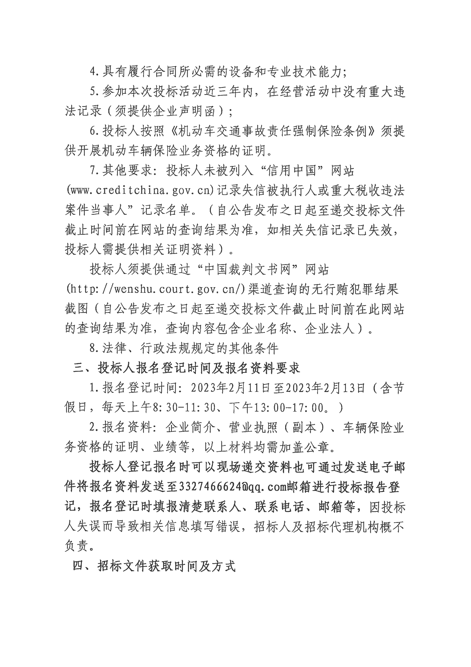 機動車輛保險服務(wù)定點投標(biāo)人入圍項目招標(biāo)公告